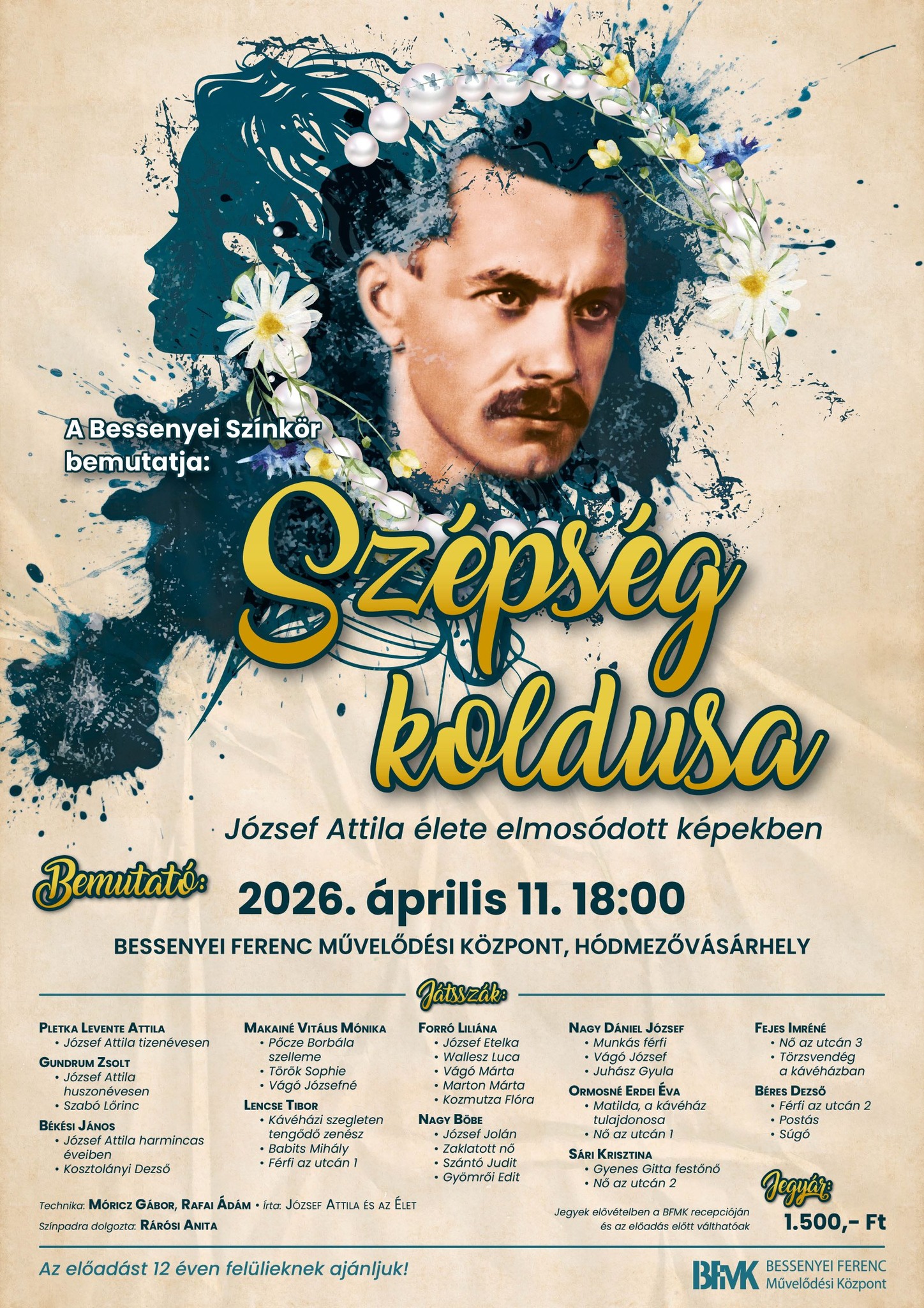 Bessenyei Színkör bemutatja a Szépség koldusa - József Attila élete elmosodótt képekben című darabját. Az előadást 12 éven aluliaknak nem ajánlják! Jegyek a BFMK recepcióján kaphatók nyitvatartási időben és az előadás előtt! 1500.- Ft/db[...]
