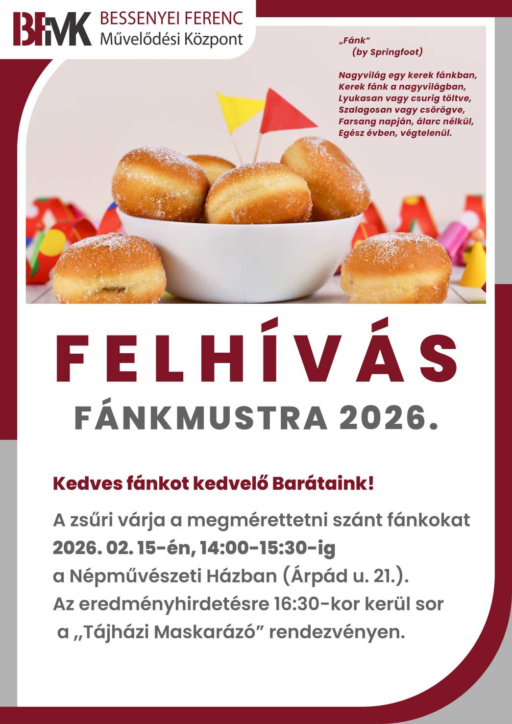 Várjuk a finom fánkokat egy mustrára 2026. február 15-én, vasárnap a Tájházban!