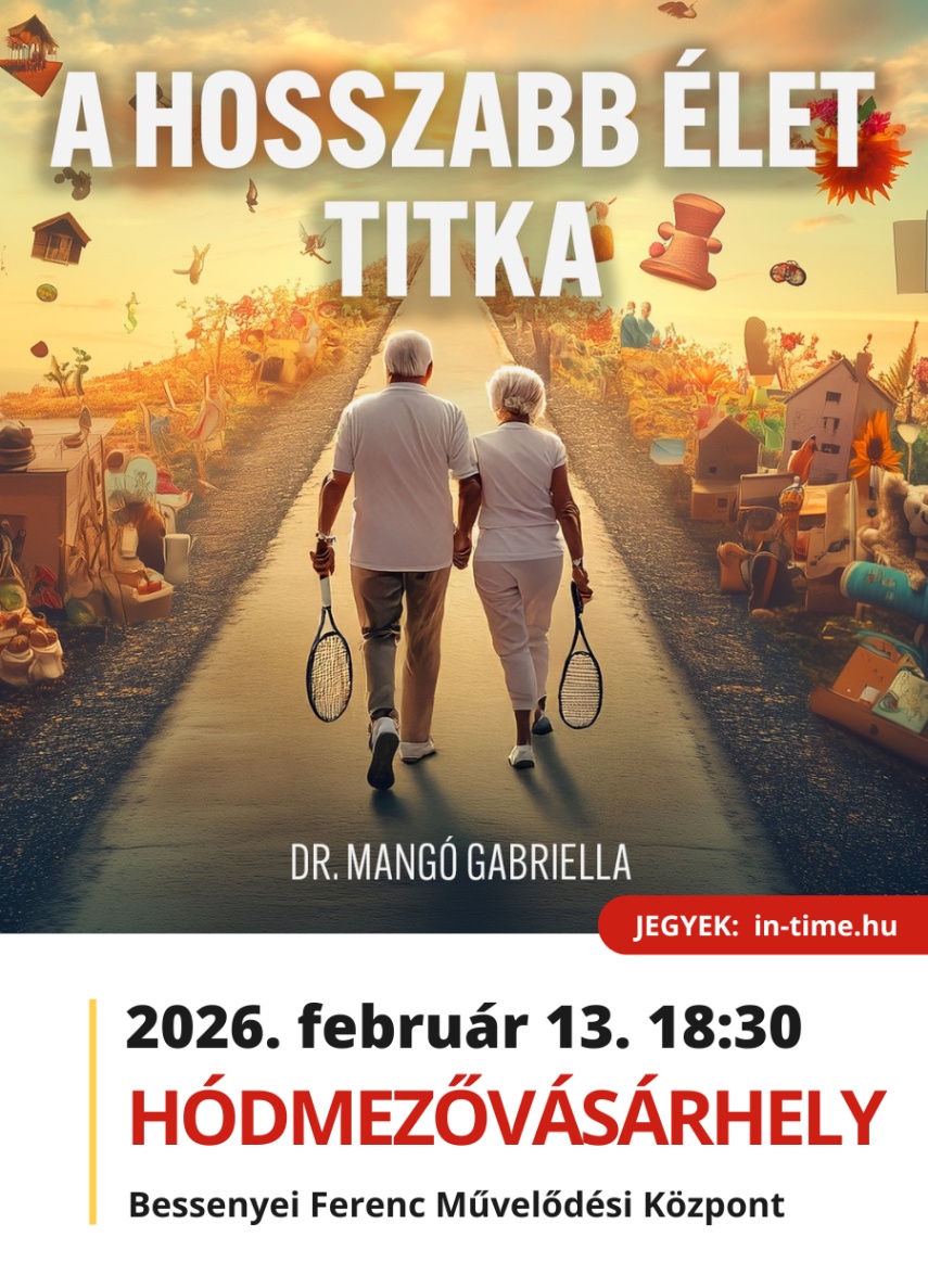 Dr. Mangó Gabriella: A hosszabb élet titka - 2026. február 13. Jegyek kaphatóak a https://in-time.hu/e/a-hosszabb-elet-titka-hodmezovasarhely-260213 oldalon. Mi lenne, ha a kezedbe kapnád a választ arra, hogyan élhetsz hosszabban – és jobban? 🍎 Miért van az,[...]