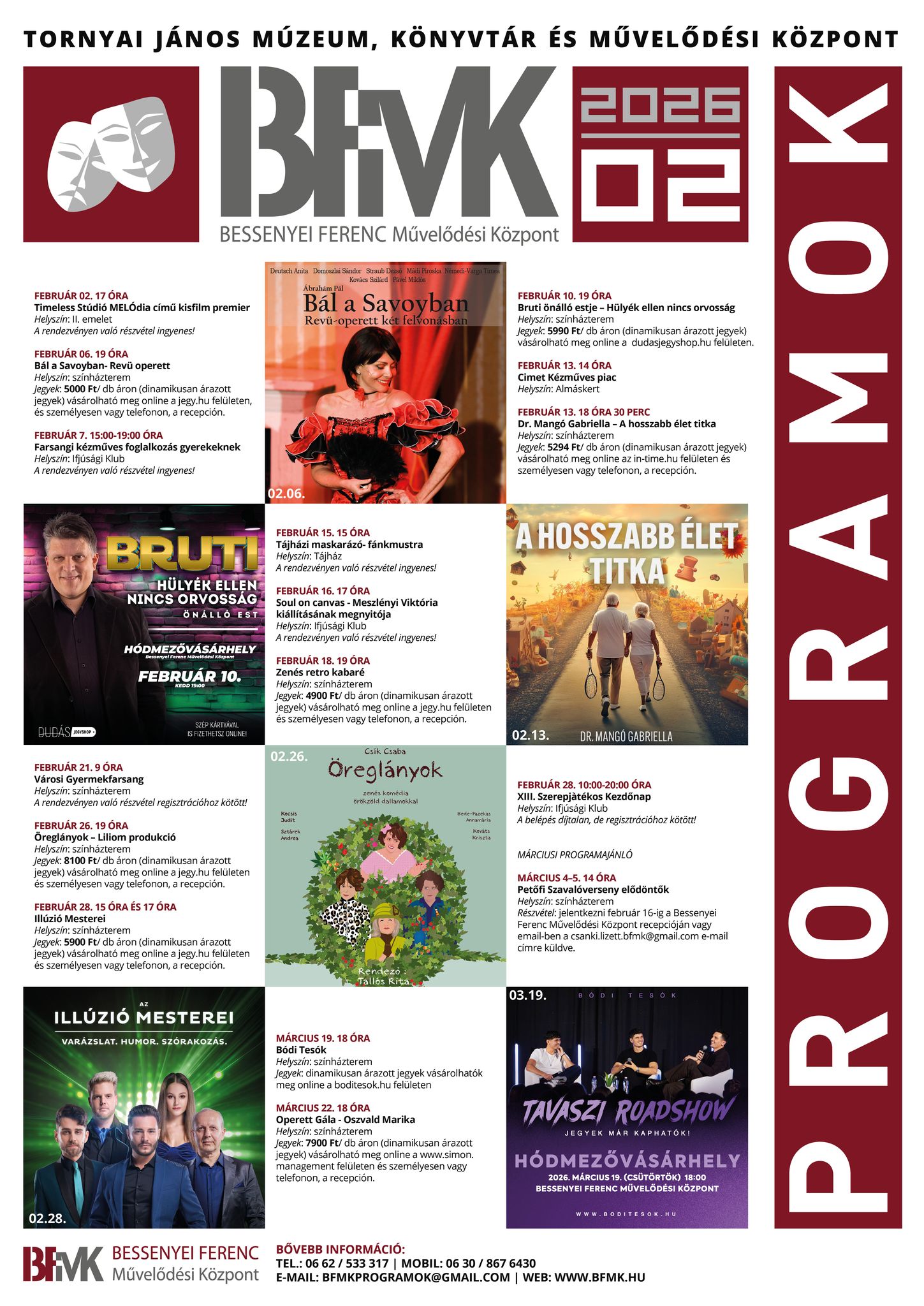 View Larger Image BFMK Február-Március BFMKUJ2026-01-22T12:08:54+01:00 Oszd meg programunkat másokkal is! FacebookXEmail: